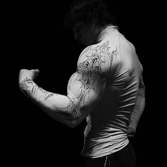 GYM Fitness Training Clothes Cardigan Zipper Style Gothic Style Men's Trend Training Slim Fit Cycling Quick Drying Long Sleeved